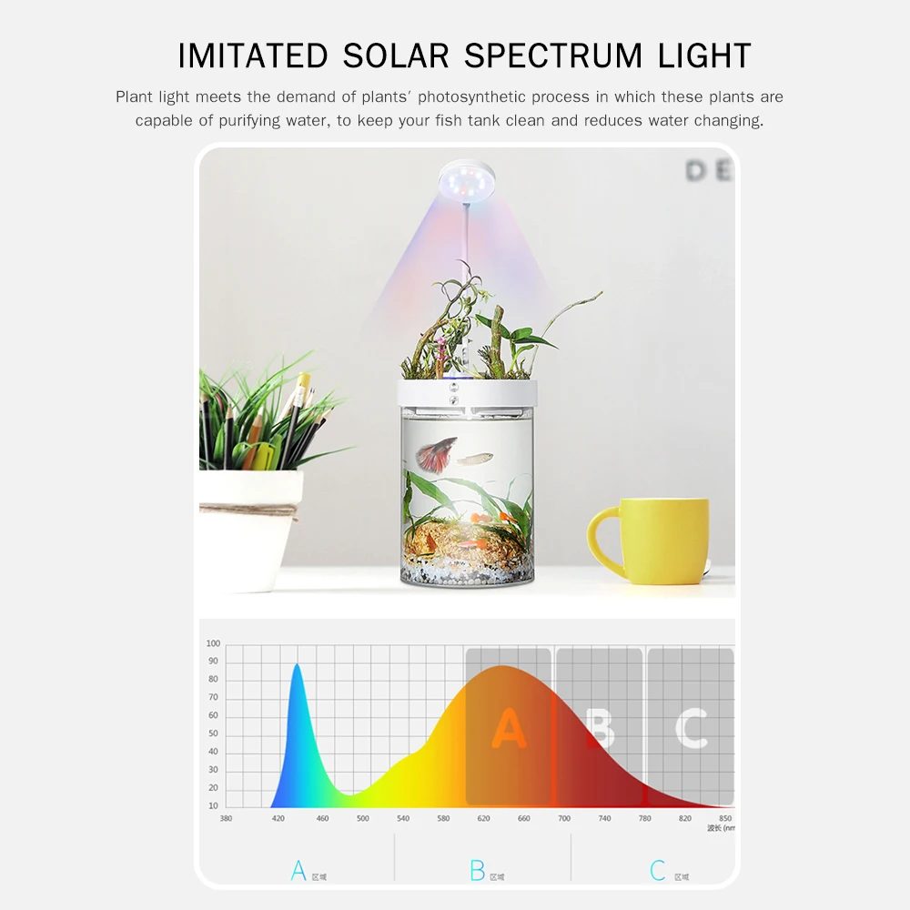 Растительный светильник-- Оснащенный имитирующим светильник солнечного спектра для роста растений, он отвечает требованиям фотосинтетического процесса растений, в котором эти растения способны очищать воду, чтобы сохранить ваш аквариум чистым и уменьшает Изменение воды.