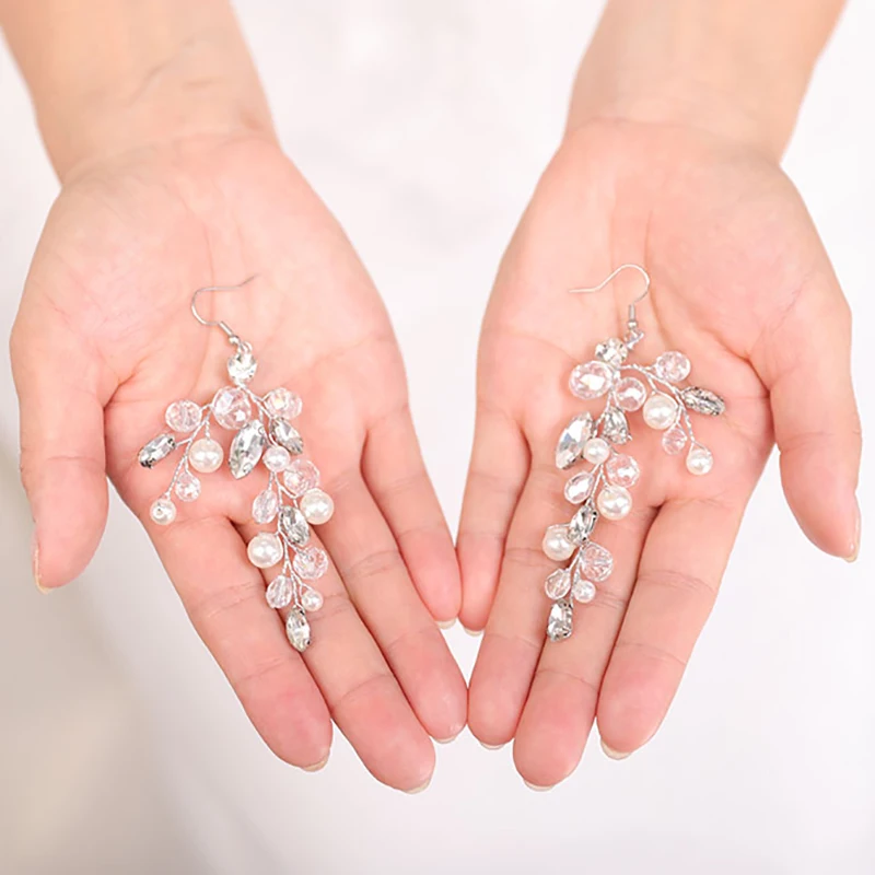 Посылка включает в себя: одну головную повязку и пару сережек Материал: искусственный жемчуг, искусственный кристалл, стразы и серебряная проволока Этот головной убор используется для особых случаев, таких как свадьбы, банкет или вечерние. Изящное украшение сделает вас еще красивее.