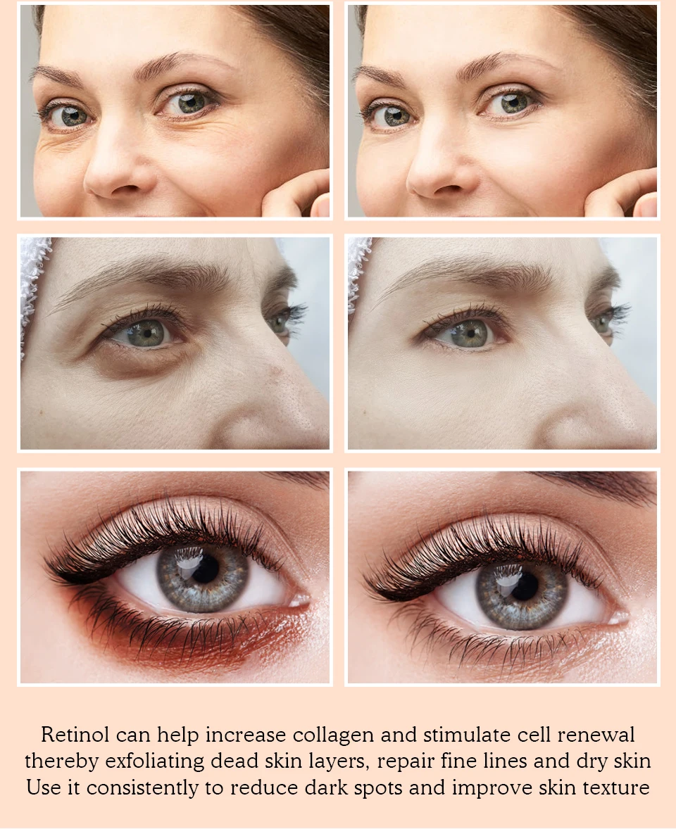 Ретинол может помочь увеличить коллаген и стимулировать обновление клеток, тем самым отшелушивая омертвевшие слои кожи, восстанавливая тонкие линии и сухой кожи используйте его последовательно, чтобы уменьшить темные пятна и улучшить текстуру кожи