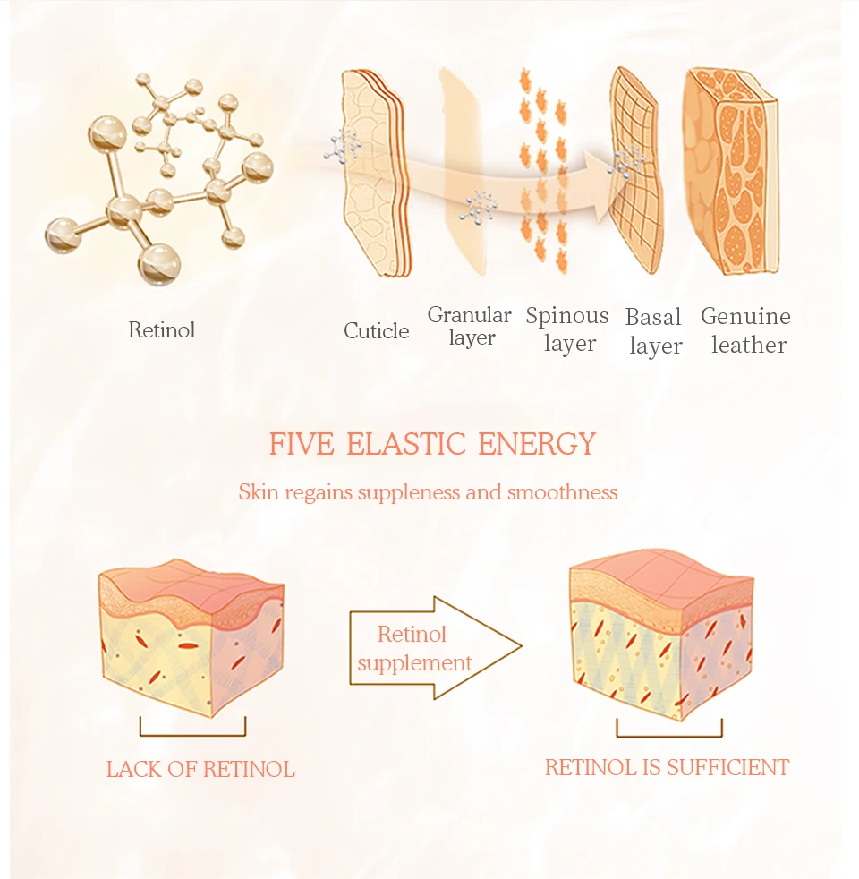 Ретинол гранулированный слой для кутикулы, спинный слой из натуральной кожи Пять упругой энергии Кожа восстанавливает упругость и гладкость Отсутствие ретинола-ретинола достаточно