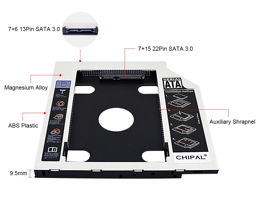 1. 100% новый и никогда не использованный товар;2. Толщина данный переходник 9,5 мм;3. Внутренний Интерфейс: SATA (для 2,5 "HDD/SSD);Внешний интерфейс: SATA (материнская плата для ноутбука);4. Поддержка SATA I & SATA II & SATA III;5. 2-й жесткий диск Caddy/адаптер обеспечивает вам максимальную гибкость хранения данных. Со вторым HDD в вашем ноутбуке,6. Вы можете ускорить резервное копирование важных приложений и критических данных (Просто удалите CD-ROM-накопитель и поместите на место Caddy (с дополнительным жестким диском).Особенности: