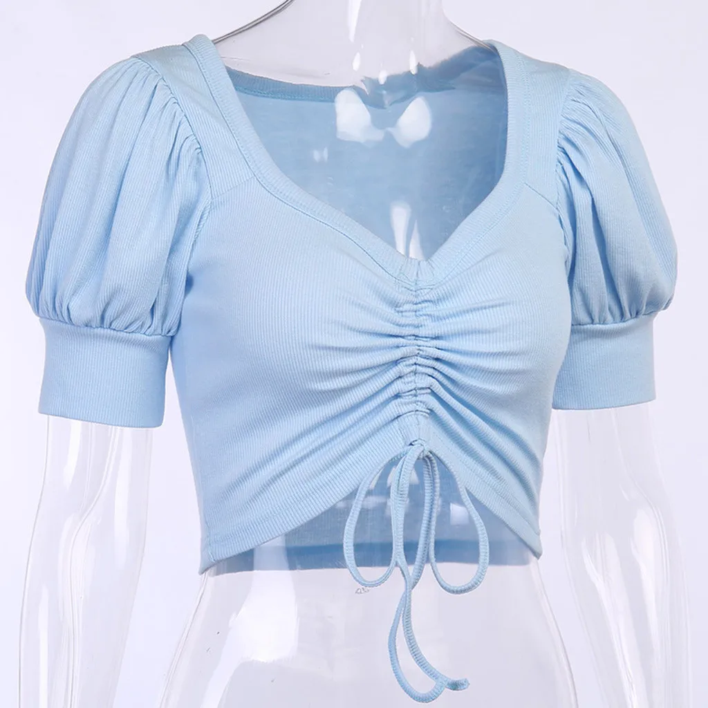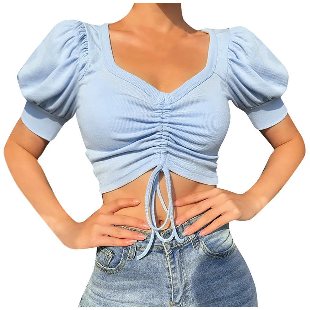 Женская модная сексуальная однотонная Тонкая блузка с v-образным вырезом и коротким рукавом.