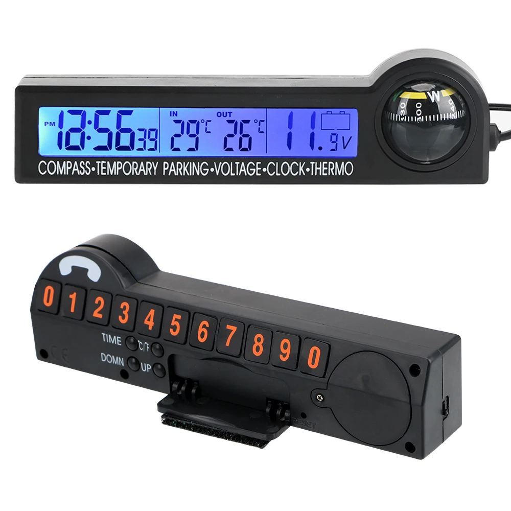 5 in 1 Multi-Function.Built-in Digital Clock and Temperature Gauge, driver can learn the time and temperature conveniently to arrange the driving time appropriately.There are 5 groups (0-9) number stickers, you can freely compose your own mobile phone numberLarge- LCD screen, you can clearly display the time, date and the second, visual effects at a glance.With blue luminous, you can easily learn the current time at night just one click.It can be installed and used in the car and office conveniently.