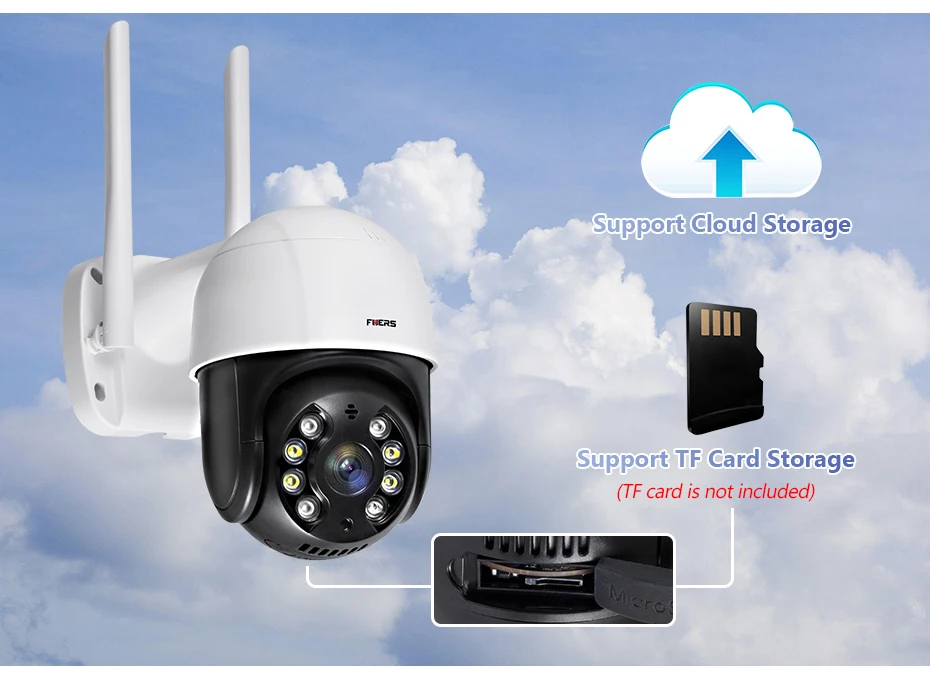 Камера поддерживает Локальное резервное копирование до 128 Гб TF карты, а также предоставляет Облачное хранилище
