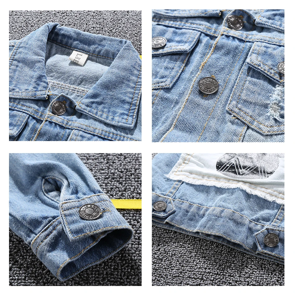 Джинсовая куртка для мальчиков и девочек, модная верхняя одежда из денима с мультяшным рисунком, осень 2020