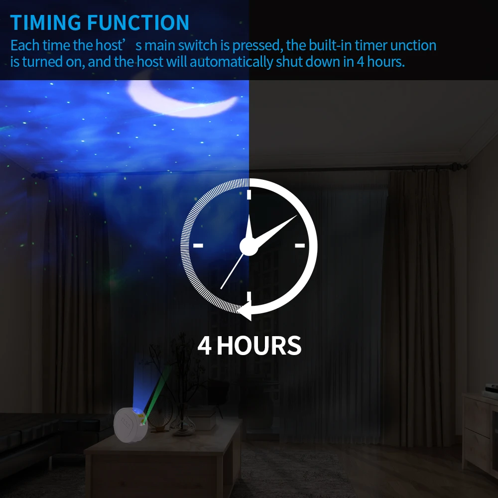 На звездном проекторе есть пять мини-футов с четырьмя различными углами съемки, чтобы удовлетворить ваши различные потребности.