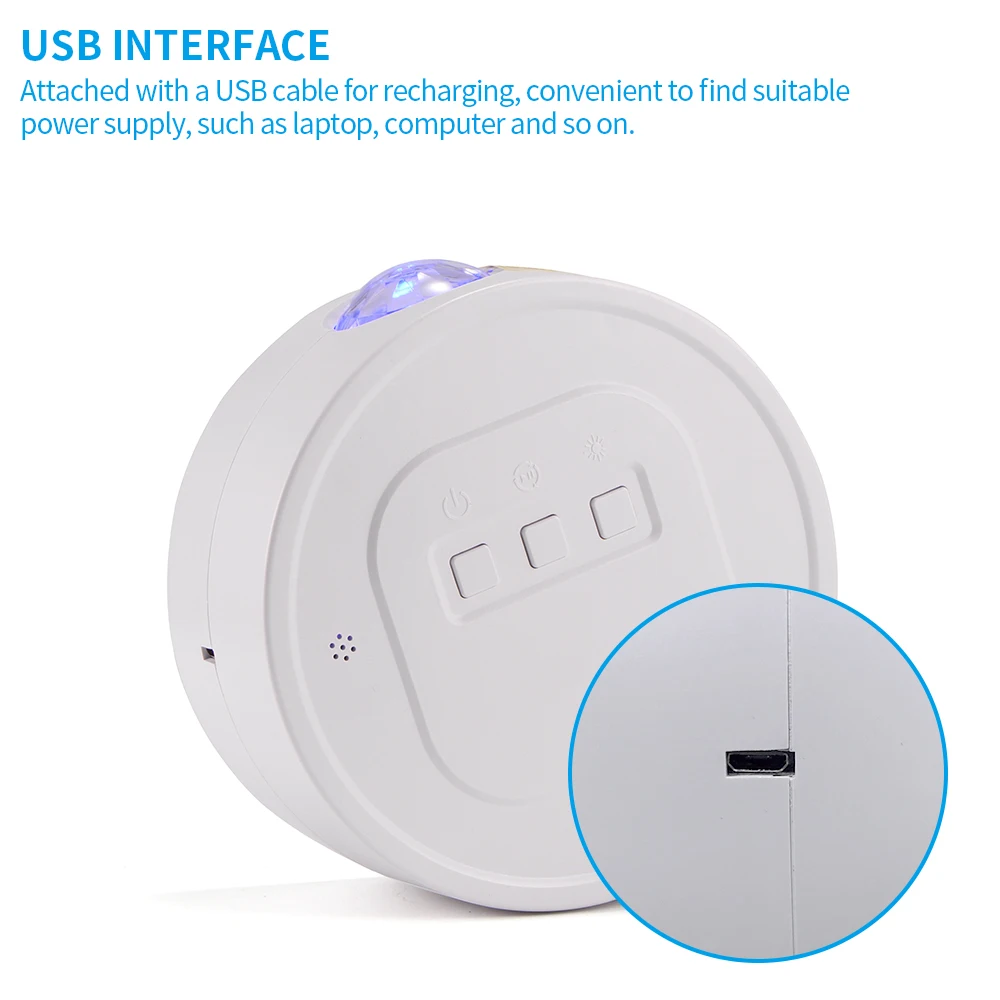 Звездный проектор широко подходит для спальни, гостиной, ночной и других помещений. Встроенный аккумулятор емкостью 2000 мАч может работать до 2-3 часов, удобно для пользователей переносить его в зависимости от конкретной ситуации.