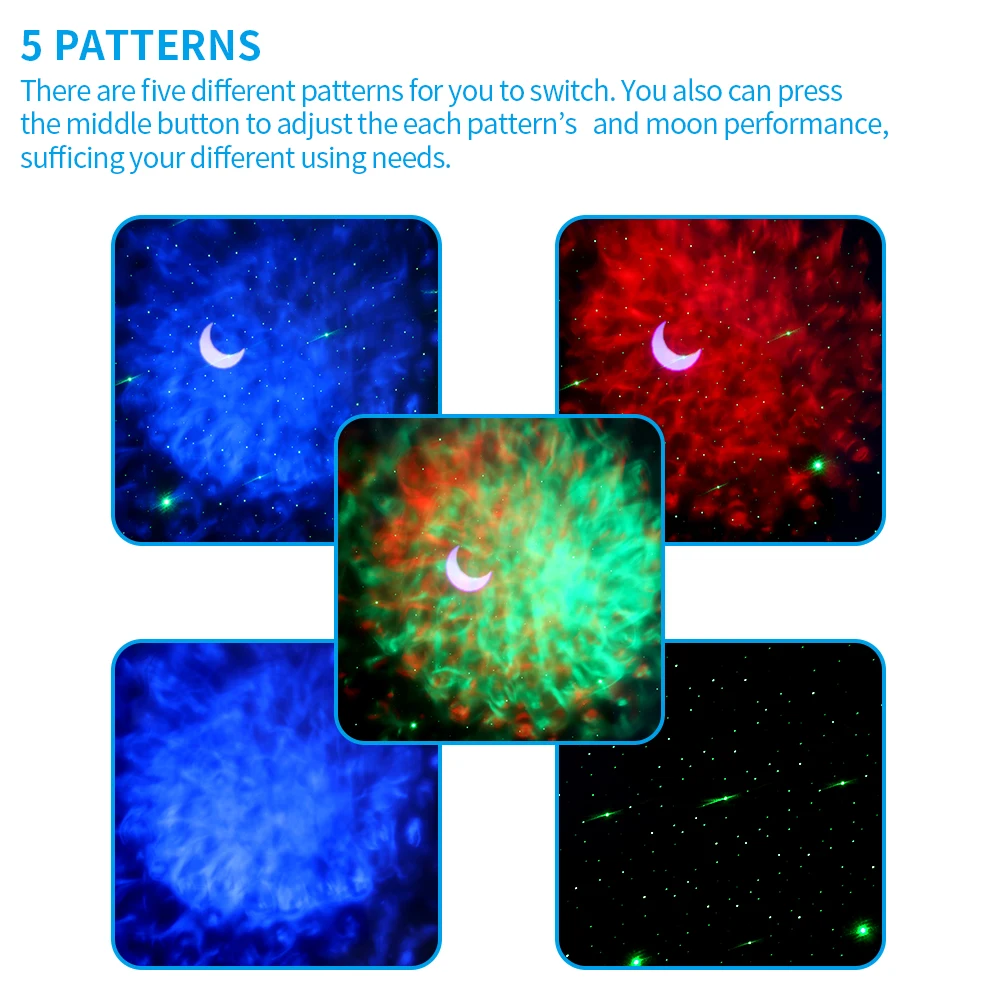 Для переключения есть пять разных узоров. Вы также можете нажать среднюю кнопку, чтобы отрегулировать производительность каждого узора и Луны, заполняя различные потребности в использовании.