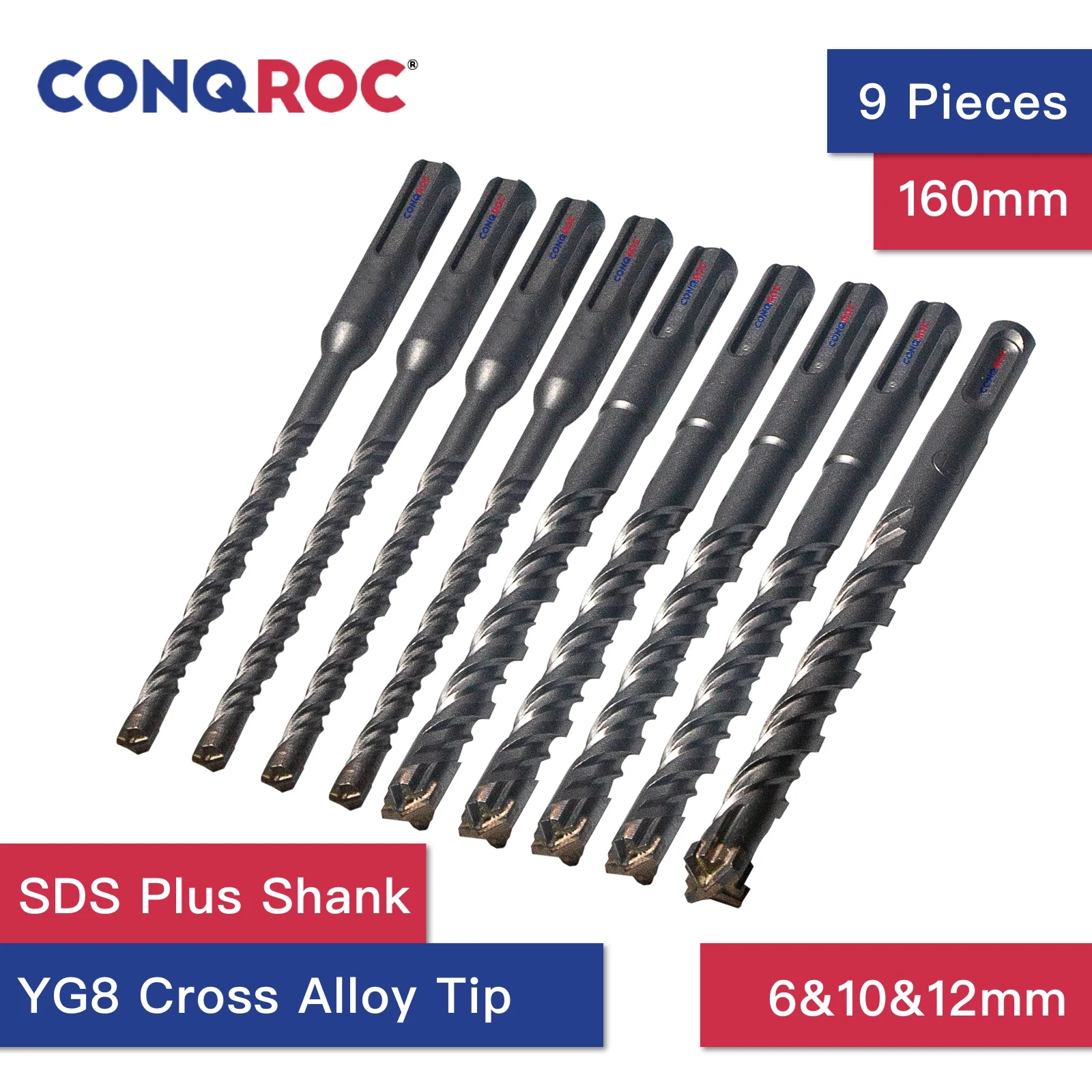 9 шт. 160 мм SDS Plus набор сверл 6 мм 6 мм 6 мм 6 мм 10 мм 10 мм 10 мм 10 мм 12 мм твердосплавные сверла с поперечным наконечником
