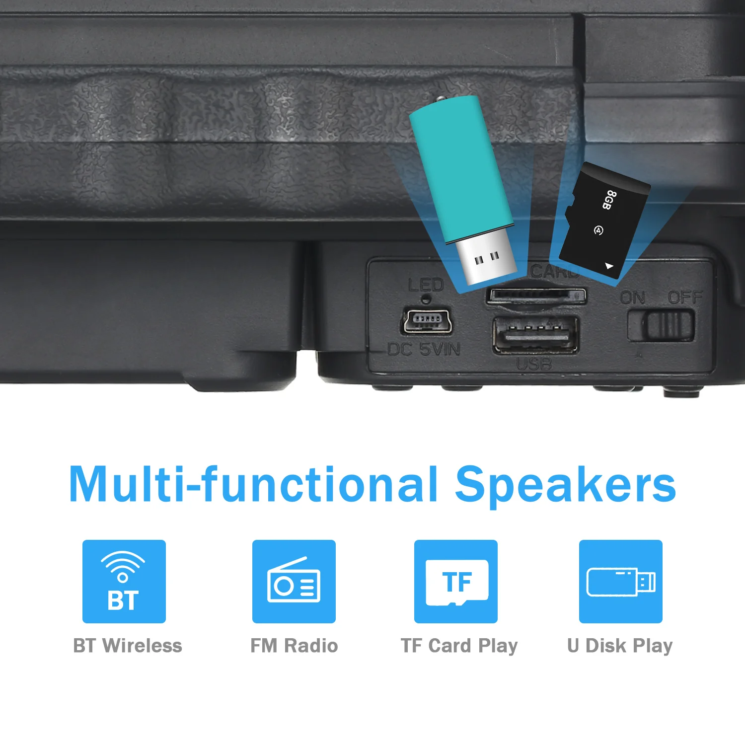 Динамик позволяет переключать режимы между режимом BT, режимом tf-карты, режимом USB disk, режимом FM.