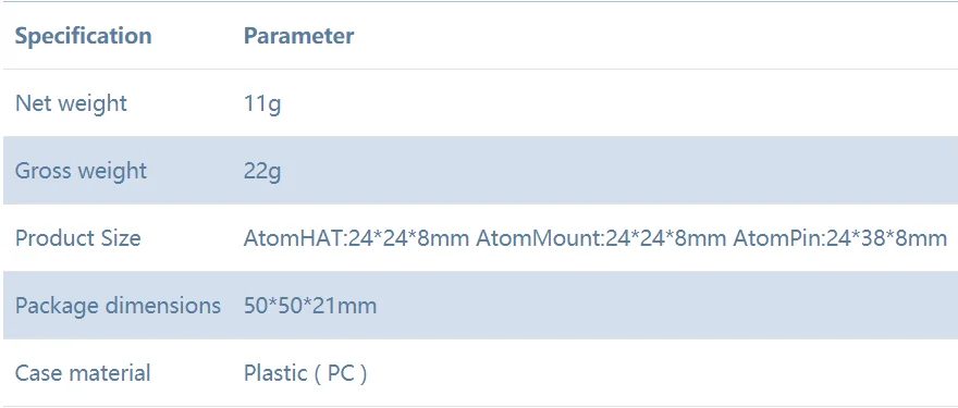 ATOM MATE-это набор для расширения DIY, специально разработанный для семьи M5ATOM. В комплект входят 3 вида аксессуаров. AtomPin-это плата адаптера, которая может расширить нижние контакты M5Atom со всех сторон, что упрощает создание схем на макетной плате. Благодаря специальному кронштейну вы можете легко прикрепить M5Atom, не влияя на использование контактов. AtomHat-это плата адаптера для адаптации серии M5StickC Hat продуктов для использования с M5Atom. Если у вас уже есть аксессуары для шляп, вы можете напрямую использовать адаптер AtomHat для повторного использования с M5Atom. В нижней части есть отверстие в форме Креста, которое может быть подключено к Lego, что позволяет легко монтироваться на проекты Lego.
