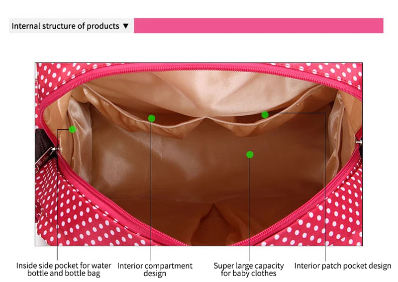 Основной карман на молнии X 1: детские бутылочки, одежда, головные уборы, обувь, носки, закуски, гарнитура, книги, журнал, подгузники, детские игрушки и т. Д.