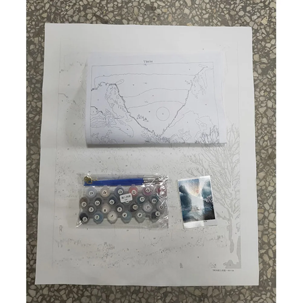 Посылка включает в себя: 1 рисунокИзображение;1 х Холст,3 х кисти,1 комплект пигментов