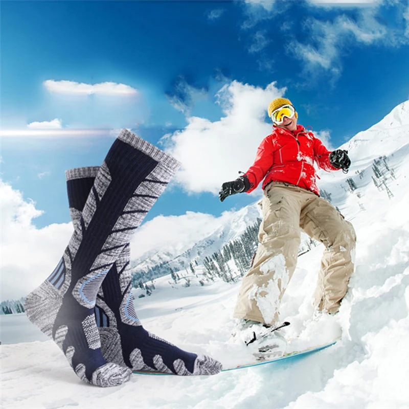 2 пары лыжных носков, мужские уличные спортивные носки для пеших прогулок и бега, хлопковые махровые длинные носки для катания на лыжах