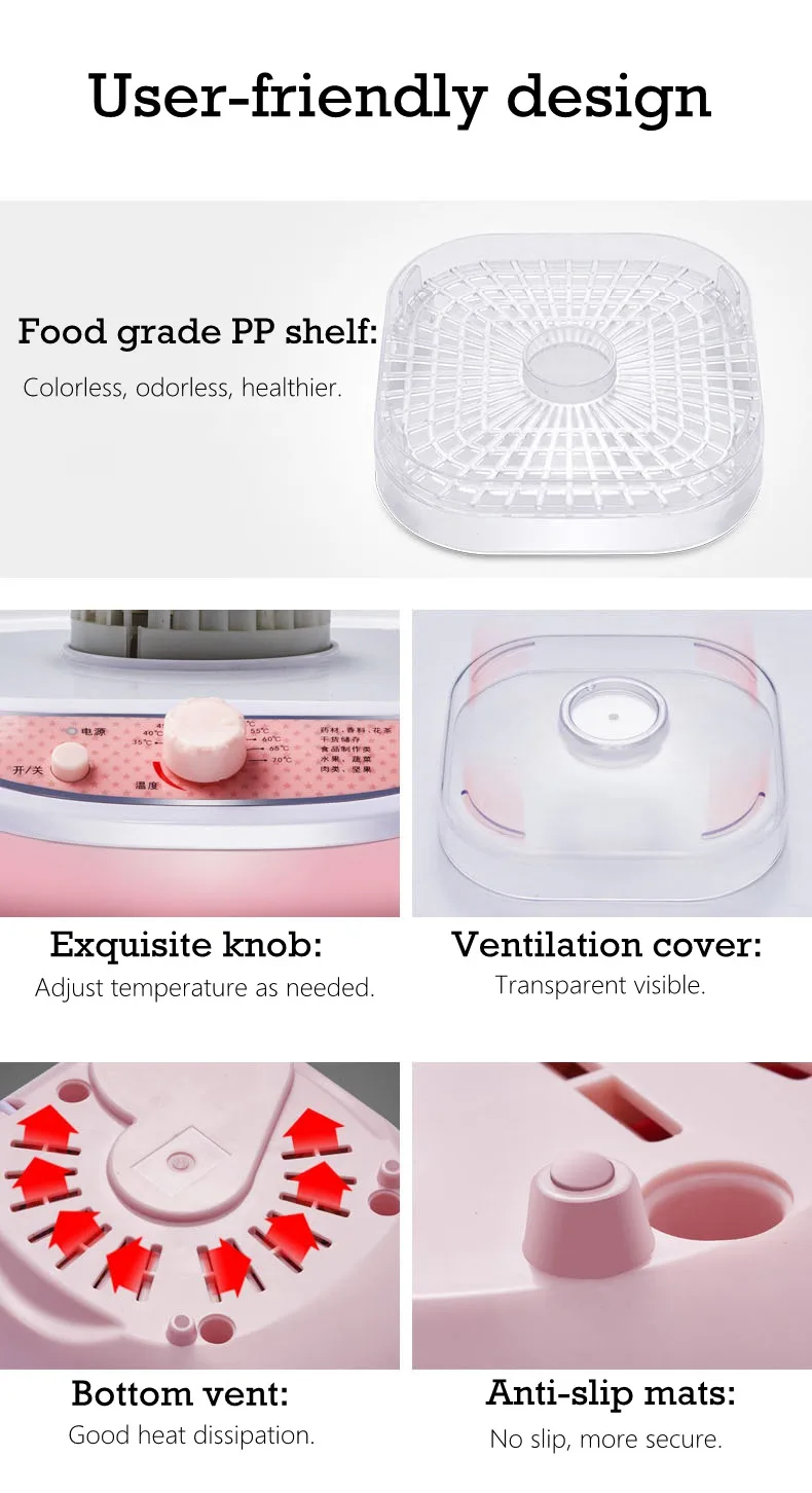 3. Встроенная технология циркуляции горячего воздуха: горячий воздух работает от дна до верха, 360 ° цикл тепла, может быстро высушить еду