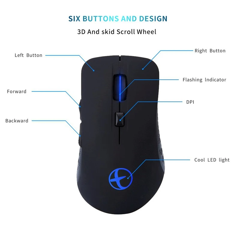 Перезаряжаемая оптическая беспроводная мышь: Эта мышь имеет встроенный литиевый аккумулятор емкостью 800 мА · ч. С этого момента вам никогда не нужно покупать батарейки для мыши. Когда происходит задержка движения курсора, вставьте зарядный кабель в передний конец интерфейса мыши для зарядки.