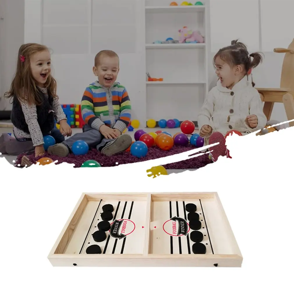 4.Easy to play :Start the game and place five pucks on each side of the board. Slide both ends of the elastic band into the side grooves so that they snap into place. The two players applauded the "High Ten" style to start the game. The player uses an elastic band to launch the puck from the door until there is no puck next to it. Players don't turn, they just refill and shoot as fast as possible. Whoever clears the board first wins