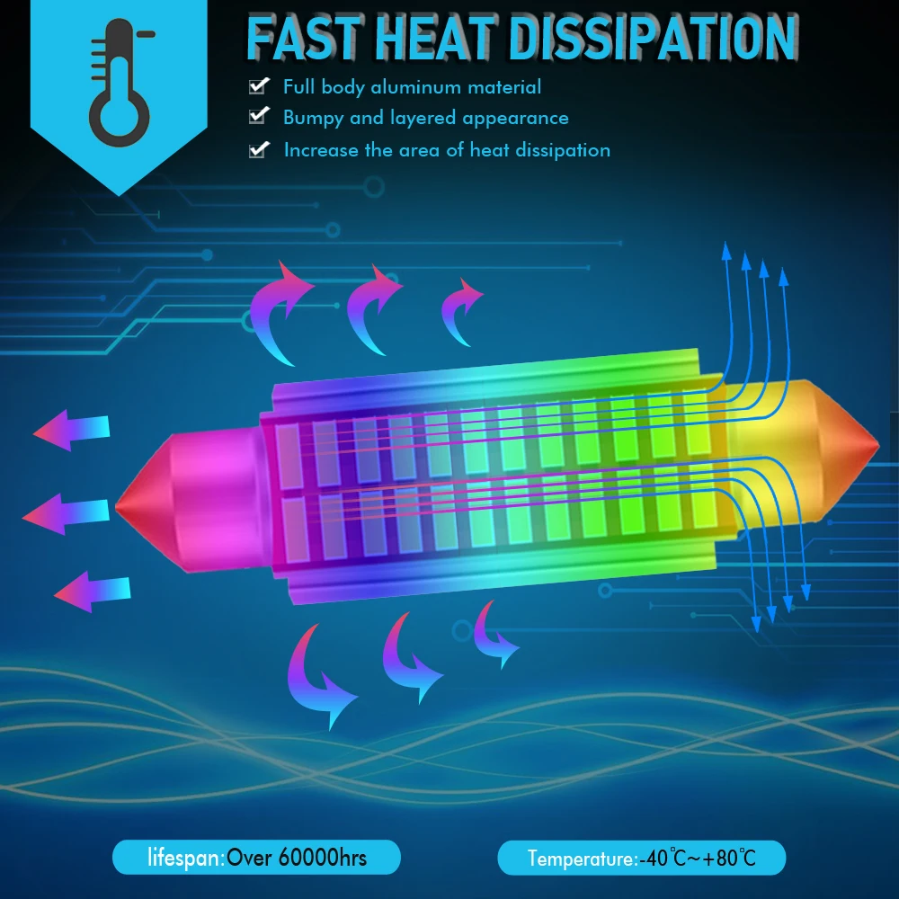 1.Canbus, без ошибок, без ошибок 2. С Помощью Чипа импортированных высоко-люменных лампочек, два конца лампы с двойным наконечником специальной железной головки, с алюминиевым охлаждающим основанием 3. Это 1/10 энергопотребления традиционных галогенных ламп, которые могут лучше защитить автомобильную цепь 4. Длительный срок службы 5000-6000 часов 5. Может непосредственно заменить традиционную двухточечную лампу, подключи и работай