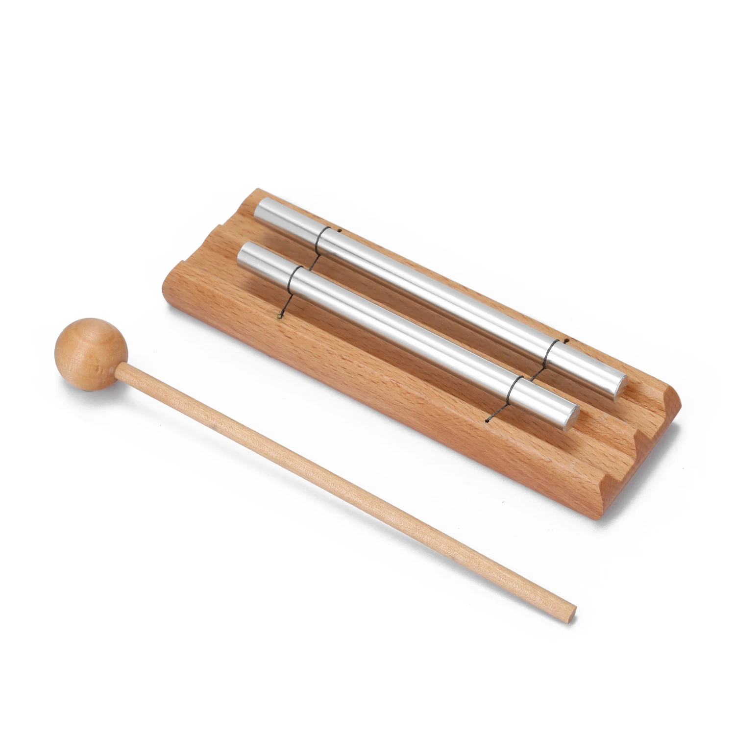 Имеет деревянную рамку с серебристым полированным алюминиевым твердым стержнем, молоток (ручка молотка проскальзывает между колокольчиком и деревом для обеспечения сохранности).