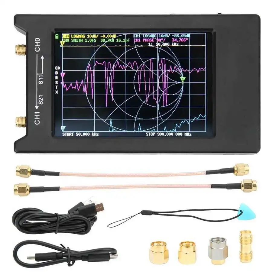 1 х анализатор векторной сети 1 x Руководство по структуре меню 1 кабель для передачи данных USB Type-C Кабель для передачи данных типа C-1 шт. 2 x ВЧ кабель Разъем SMA Female-1 шт. 3 x набор для калибровки SMA 1 x сенсорный экран и веревка
