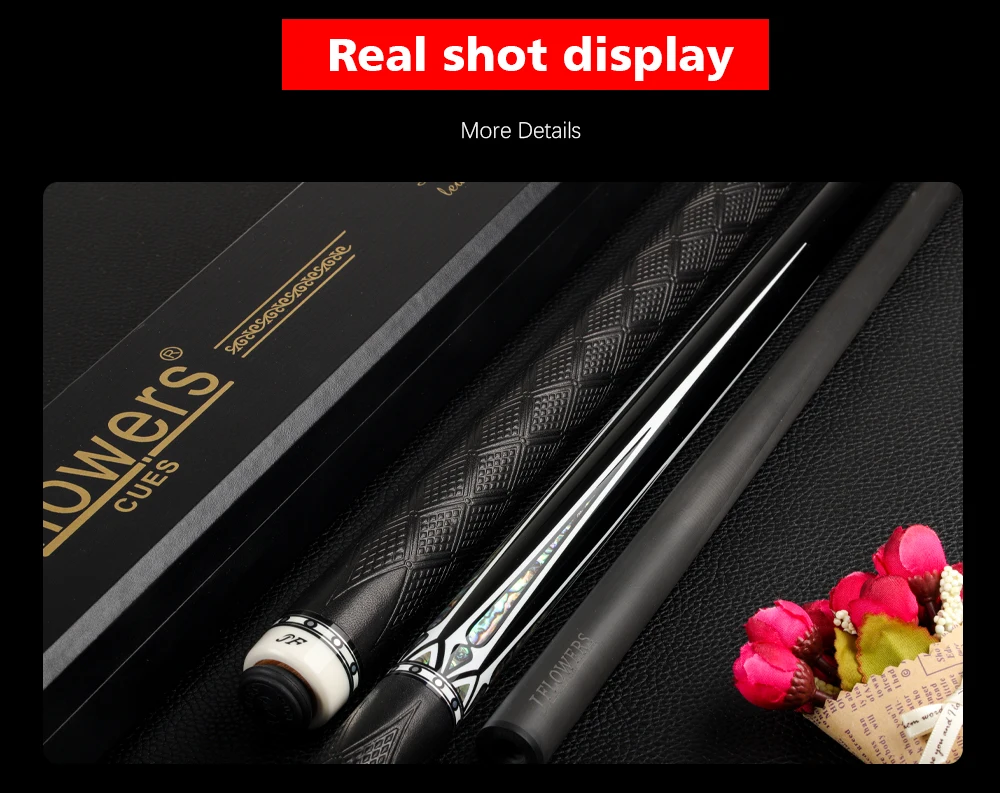 1. Черная технология forelimb использует аэрокосмический чистый углеродный волокнистый композитный материал, Внешний вид-карбоновый черный, полый корпус делает вал легче, но углеродное волокно может быть более мощным, чем цельное дерево cue 2. Ударопрочный наполнитель пены 3. Смешанный вал, ударопрочные мульти-плотность молекулярная пена и аэрокосмические волокна композитных труб, так что каждый forelimb имеет более низкую массу и кинетической передачи энергии 4. Без вышивки и без эрозии, хорошая прочность, бесшовные стыки, высокая прочность передачи 5,11 зуб из титанового сплава 6. Инкрустация раковины 7. Высококачественная кожаная ручка