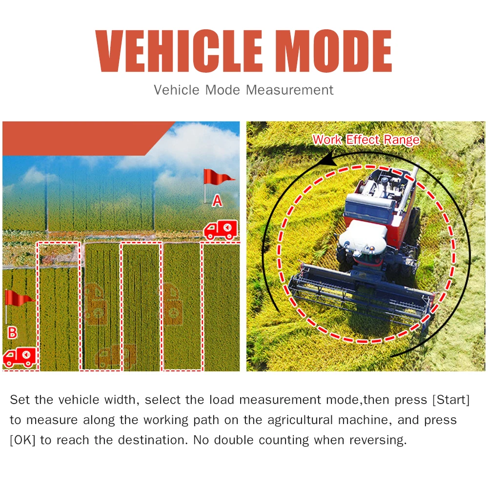 Режим многократного измерения--- Ручной фиксированный режим + автоматический режим измерения + режим измерения транспортного средства, поможет вам решить все виды измерений местности. Этот многофункциональный измеритель площади Земли может автоматически вычислить различные формы площади, а также для измерения расстояния кривой линии. Режим Slop, также называемый режимом Pythagorean, который может измерять высоту и угол наклона. Режим транспортного средства может помочь вам измерить расчет машина для жатки бегущего пути и расстояния.