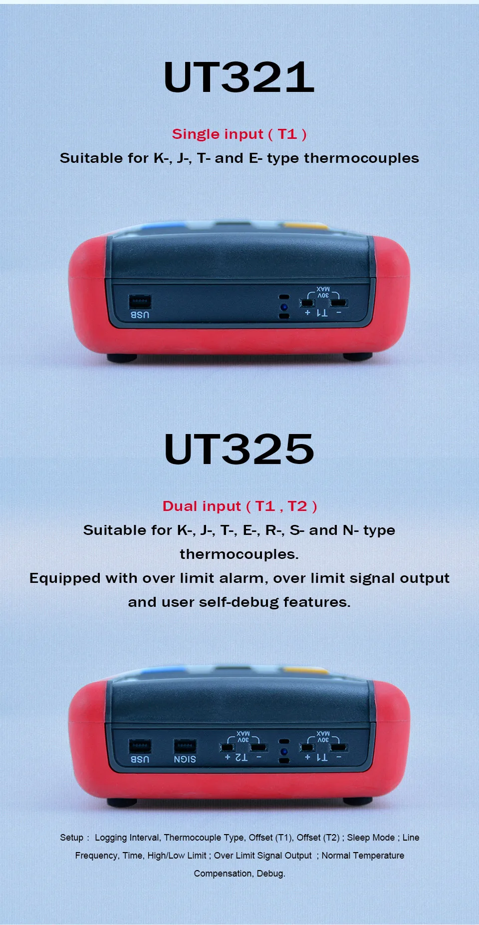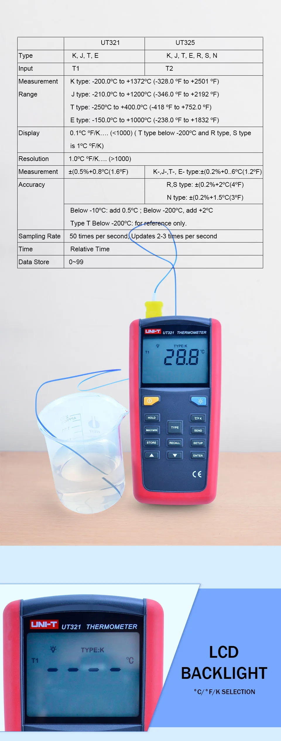 Серия UT320 Термометры контактного типа обеспечивают быстрое, точное и точное измерение температуры с помощью термопары