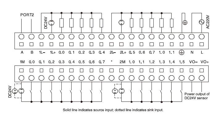Источник питания: AC85-265V источник питания Встроенные точки ввода/вывода 24 I/O, DI 14 * DC24V,DO 10 * DC24V, выход транзистора Связь порт 1 RS232, 2 RS485 Подключаемые модули расширения да. Максимум 9 модулей расширения Часы в режиме реального времени: Да Размер установки (мм):125 × 114 × 70 (L×W×H)