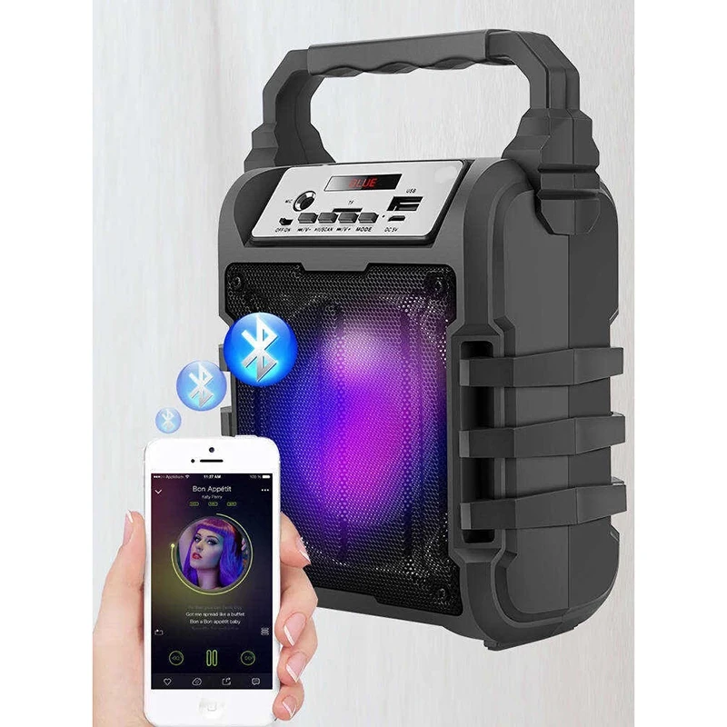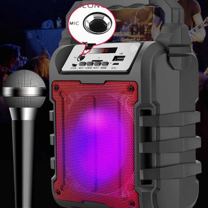 Портативный Bluetooth динамик перезаряжаемый беспроводной громкий динамик звуковая система 5 Вт стерео с караоке микрофоном FM вечерние Spe