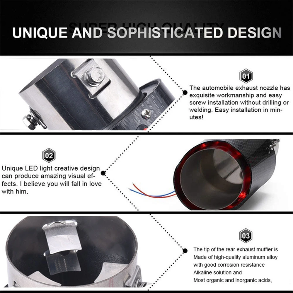 Автомобильные универсальные концевые трубы. Прочный материал устойчив к УФ, воде, грязи, смазке, соли, легкой кислоте и маслу. Светильник с весом и долговечностью. Простая установка, отличная посадка и превосходный материал. Обновленный стиль с синим светодиодный/красный светодиодный, чтобы сделать ваш автомобиль более крутым