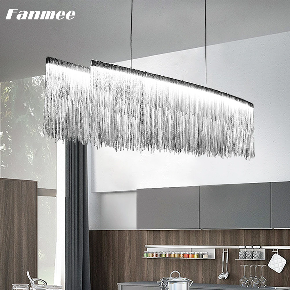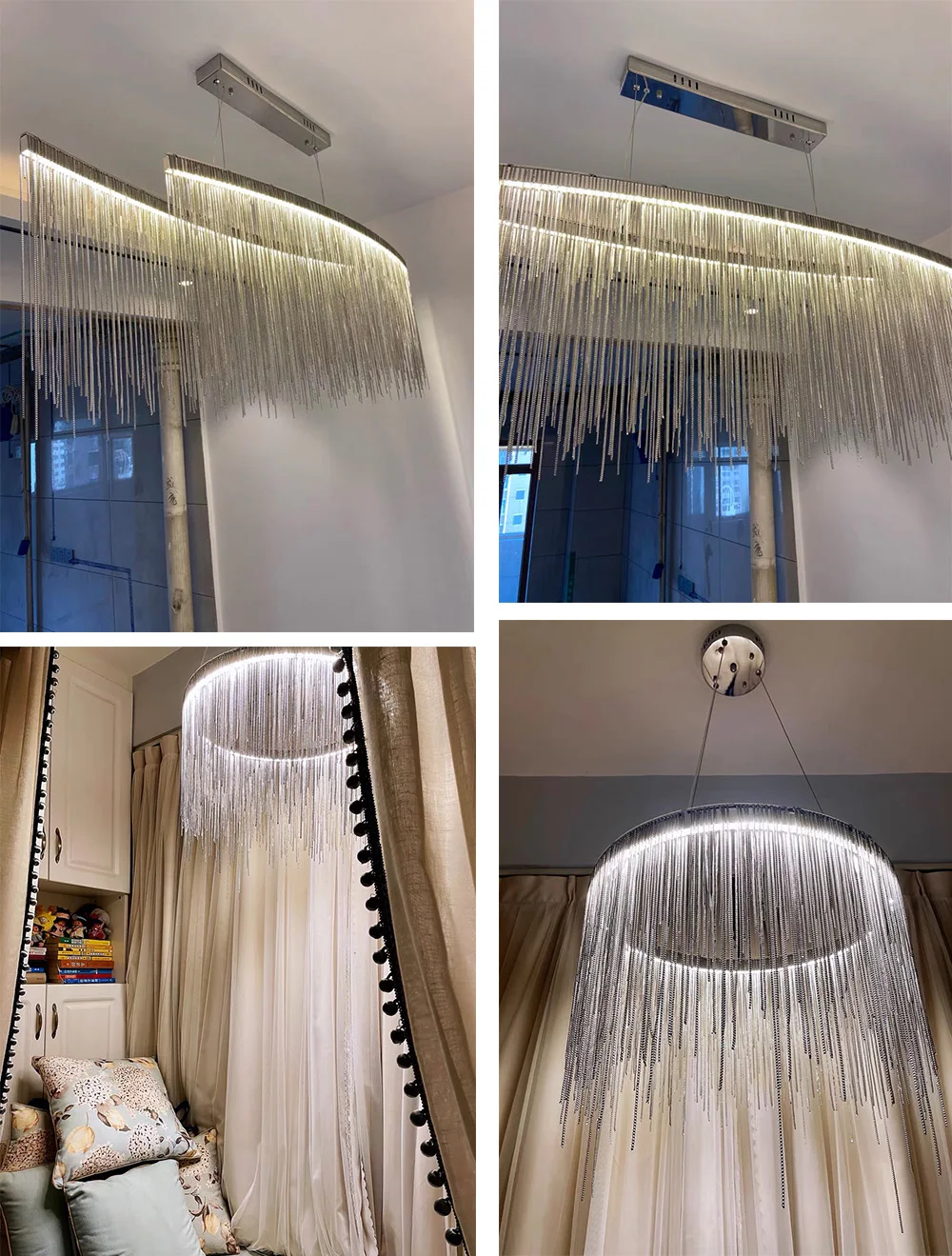 Современная круглая люстра с кисточками, светодиодный светильник с алюминиевой цепочкой, подвесная Подвесная лампа для домашнего декора, лампа для столовой, спальни
