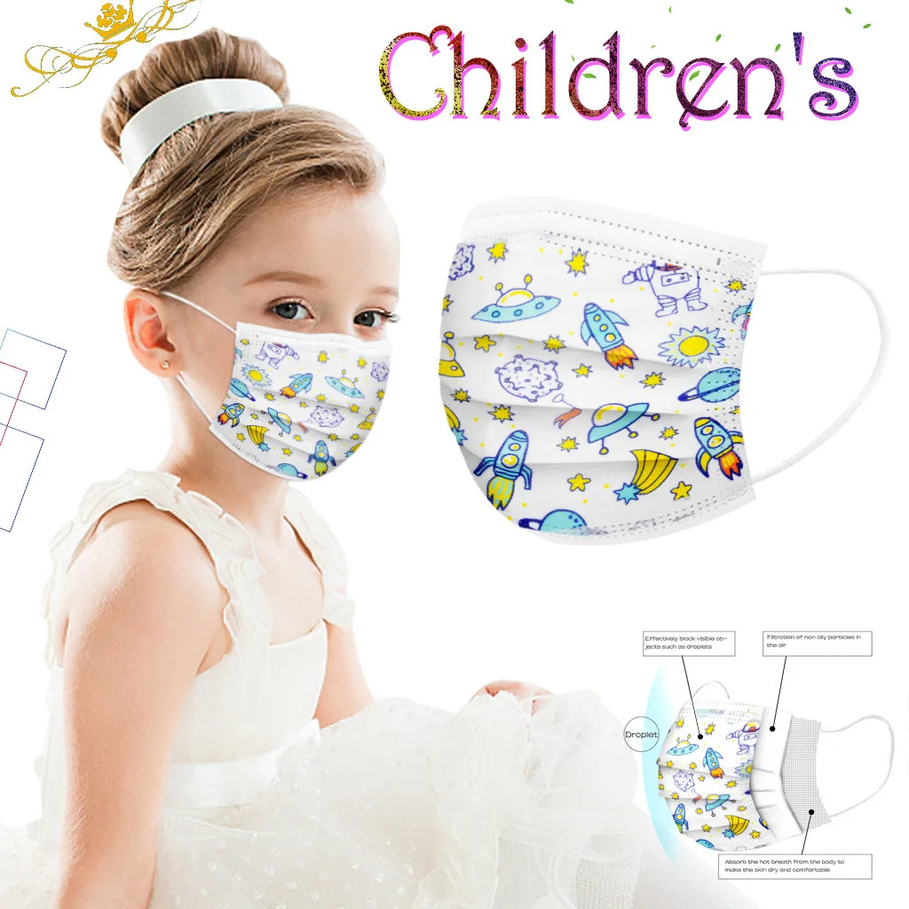50 шт., одноразовые маски для лица для детей, мальчиков и девочек, промышленные 3 слойные петли для ушей