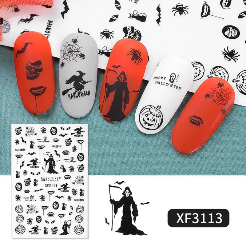1 шт., наклейки для ногтей на Хэллоуин, наклейки для ногтей с изображением паука, черные геометрические буквы, фольга для ногтей, черная надпись, водный слайдер, сексуальная девушка, лето