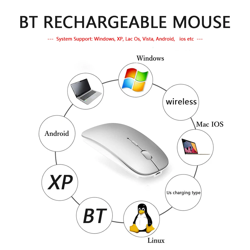 1600 точек/дюйм перезаряжаемая беспроводная мышь для компьютера, ПК, ноутбука, бесшумная Бесшумная мышь для работы в офисе, Bluetooth Беспроводная BT мышь для Windows