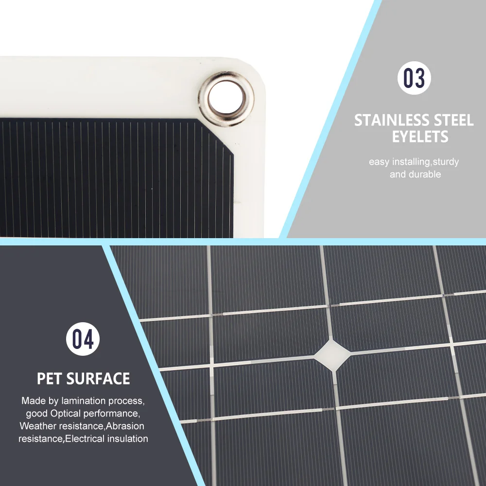 * Высокая эффективность, коэффициент конверсии до 19.6%. * Водонепроницаемая поверхность для длительного использования. * Двойной USB на контроллере может непосредственно заряжать ваш телефон, ipad, планшет. * Распределительная коробка имеет диоды для предотвращения обратного потока. * Широкий спектр применения: Аварийная зарядка других аккумуляторов 12 В, таких как автомобиль/лодка/Мотоцикл и т. д. (наружная, лесная, Луговая и другая генерация энергии, зарядка, портативная Аварийная зарядка)