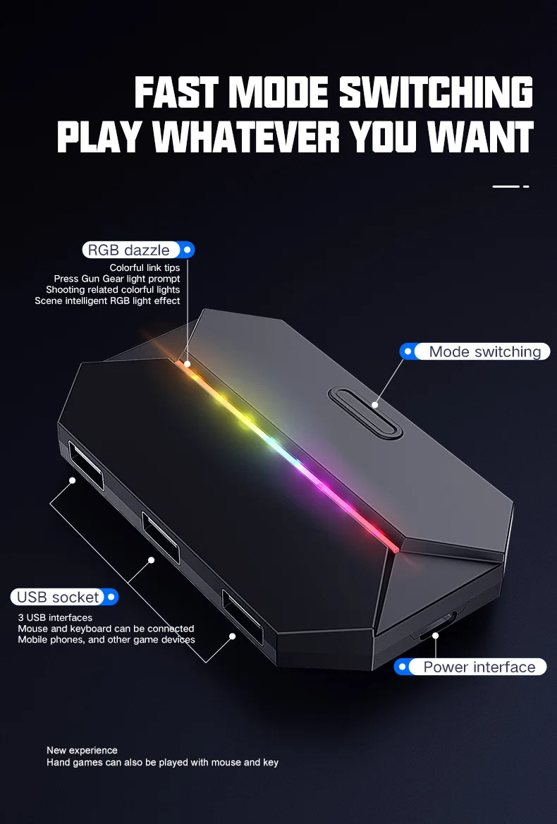 Поддерживает функцию usb-хаб-сплиттера кабеля. 3 usb-интерфейса для подключения мыши, клавиатуры, мобильный телефон и других игровых устройств.