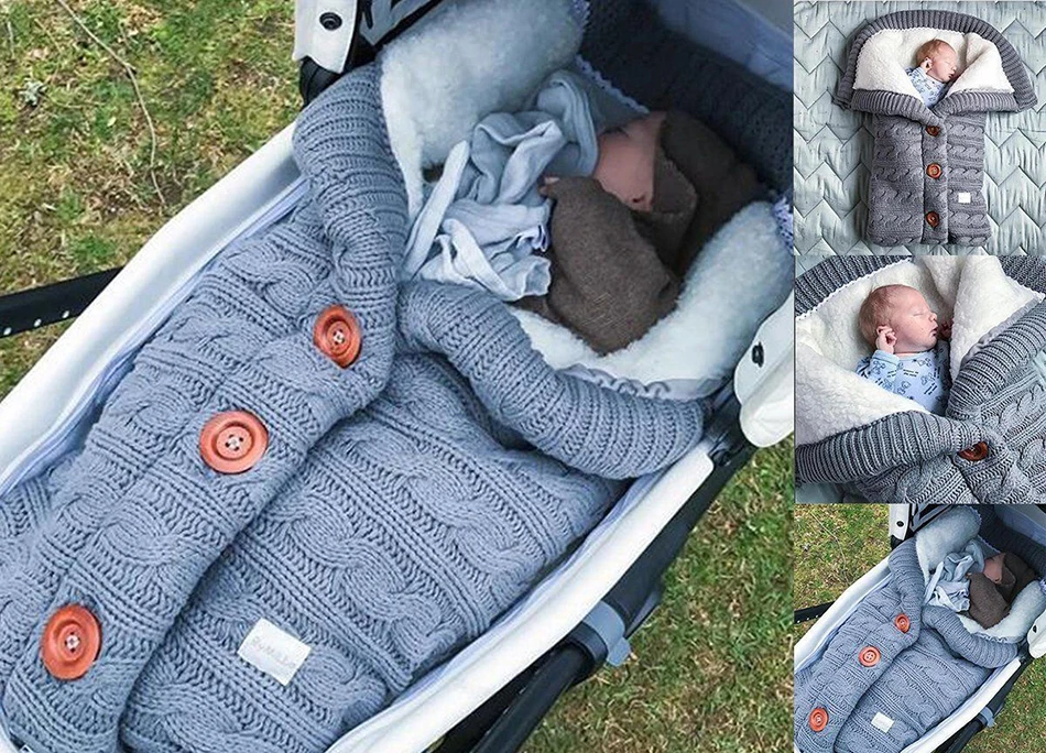 Зимний Теплый детский спальный мешок, детское одеяло, вязаное Пеленальное Одеяло для новорожденных, мягкий хлопковый конверт для коляски, аксессуары, одеяло
