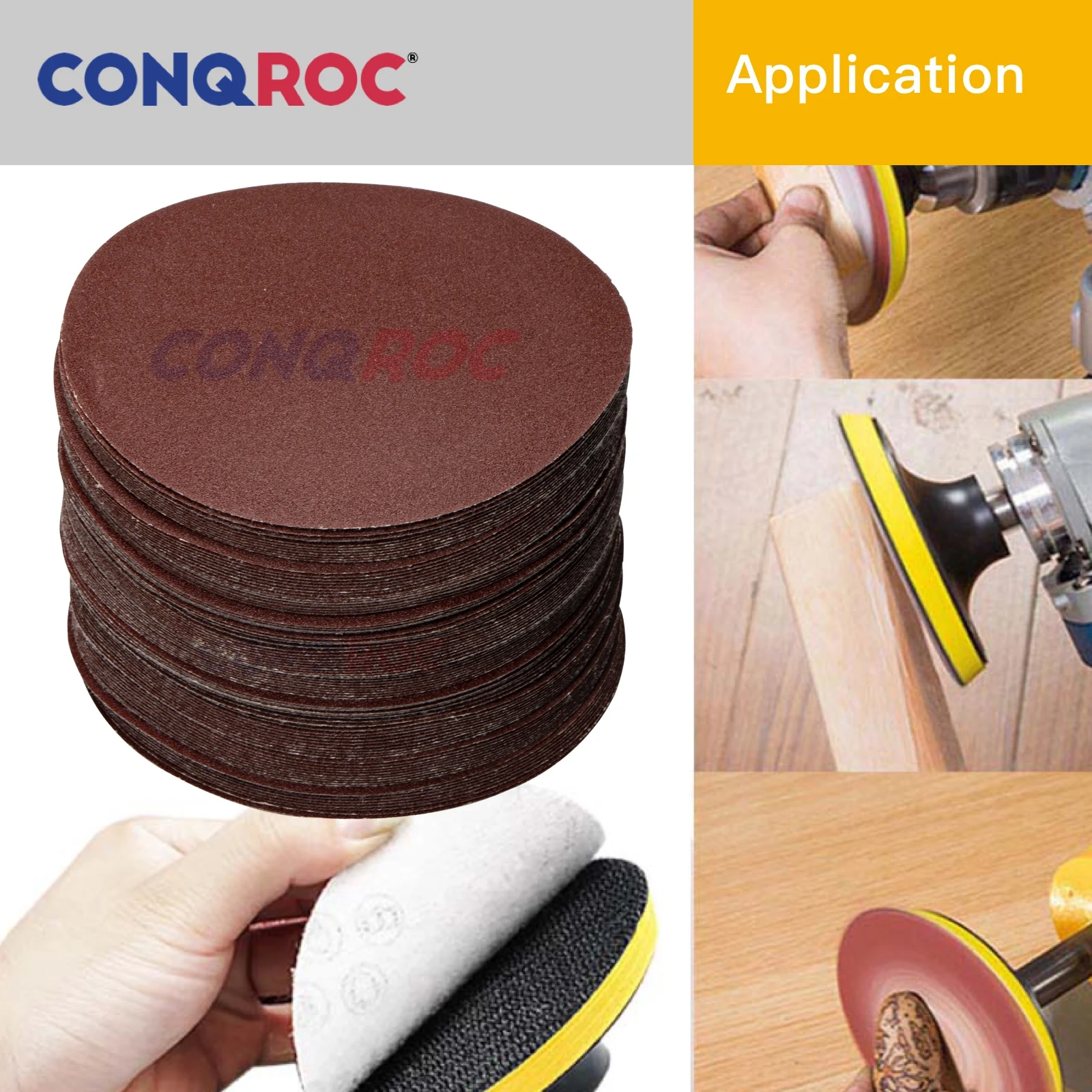 -Материал: оксид алюминия. -Диаметр: 150 мм/5,91 ''(аппр.). -Спинка: крючок и петля. -Зернистость: 40 ~ 2000