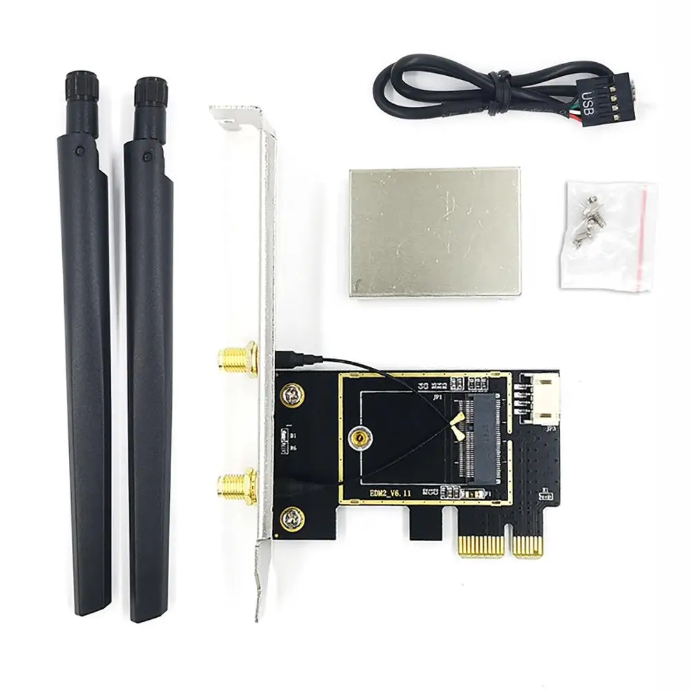 Карта PCI-E M.2/NGFF пассивный переходник предназначена для беспроводного применения на настольных ПК, которые преобразуют мини-карту полуразмера (NGFF) в разъем USB 9pin или стандартный слот PCI-Express 1x.2 x двухдиапазонные Антенны