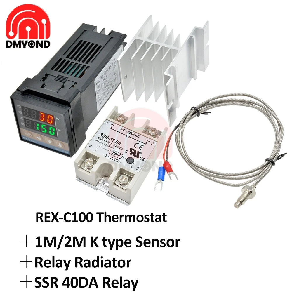 Цифровой PID регулятор температуры REX-C100 термостат REX C100 + реле 40DA SSR + K термопара 1 м 2 м Зонд RKC + релейный радиатор