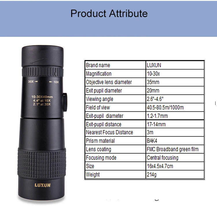 Lusun 10-30X40 охотничий зум Монокуляры мощный телескоп HD с высоким увеличением телескоп портативный Открытый Туризм телескоп