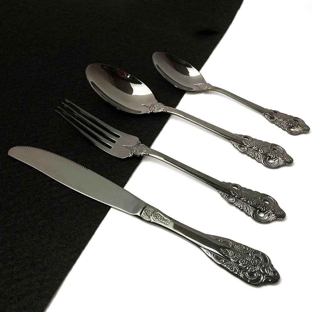 Всего 32 штуки в наборе, Обеденный нож, обеденная ложка, чайная ложка, по 8 штук в каждой.