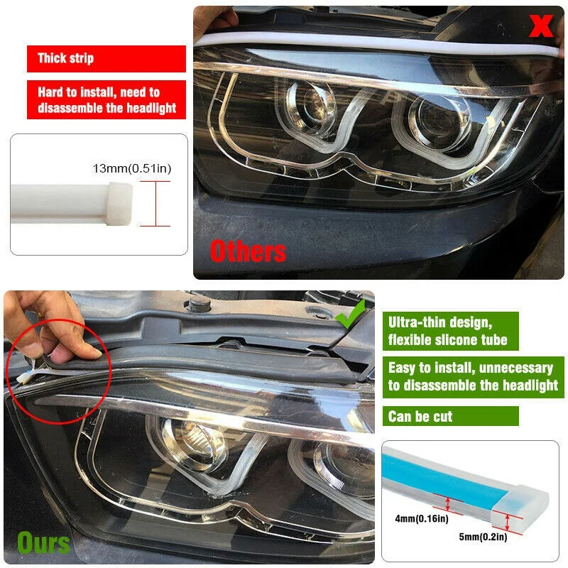 Светодиодный гибкий мягкий светодиодный светильник DRL для автомобиля.