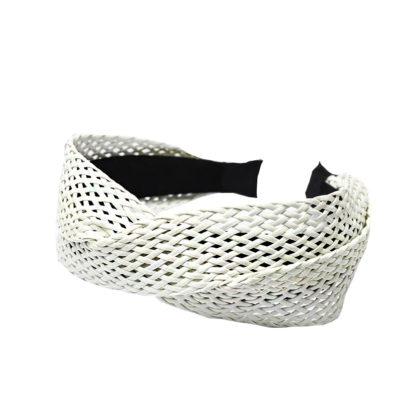 Обруч для головы, соломенное плетение, женские аксессуары для волос для девочек, обруч для волос ручной работы, обруч с перекрещенными узелками, Женская повязка, ручная работа, широкий обруч