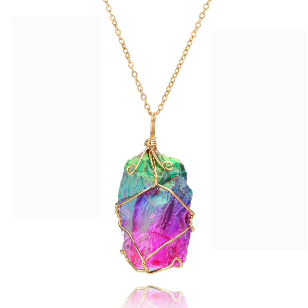 Модное ожерелье из радужного камня с натуральным кристаллом, чакра, подвеска в виде кварца