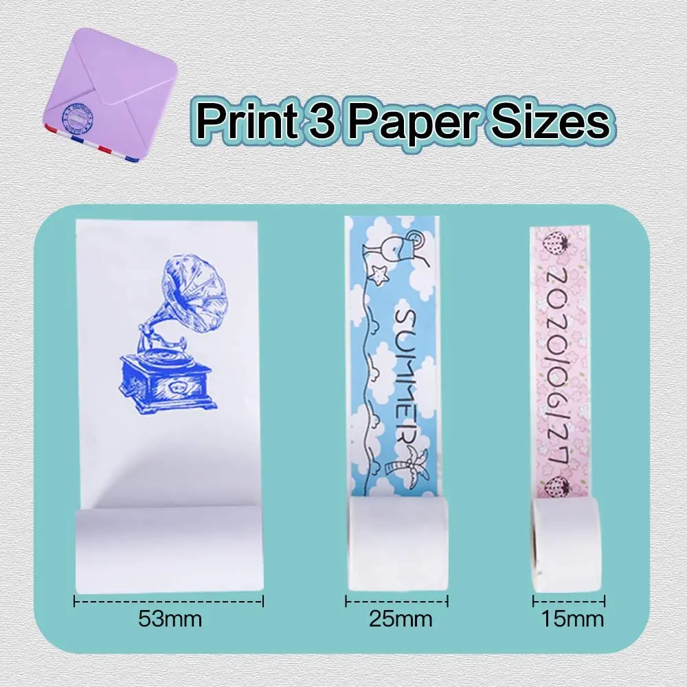 [Три размера печати]-принтер Phomemo M02S, совместимый с 3 ярлыками размеров: 15 мм, 25 мм и 53 мм. Настройте этикетку и Распечатайте ее. Его можно использовать в качестве элегантного домашнего принтера этикеток.