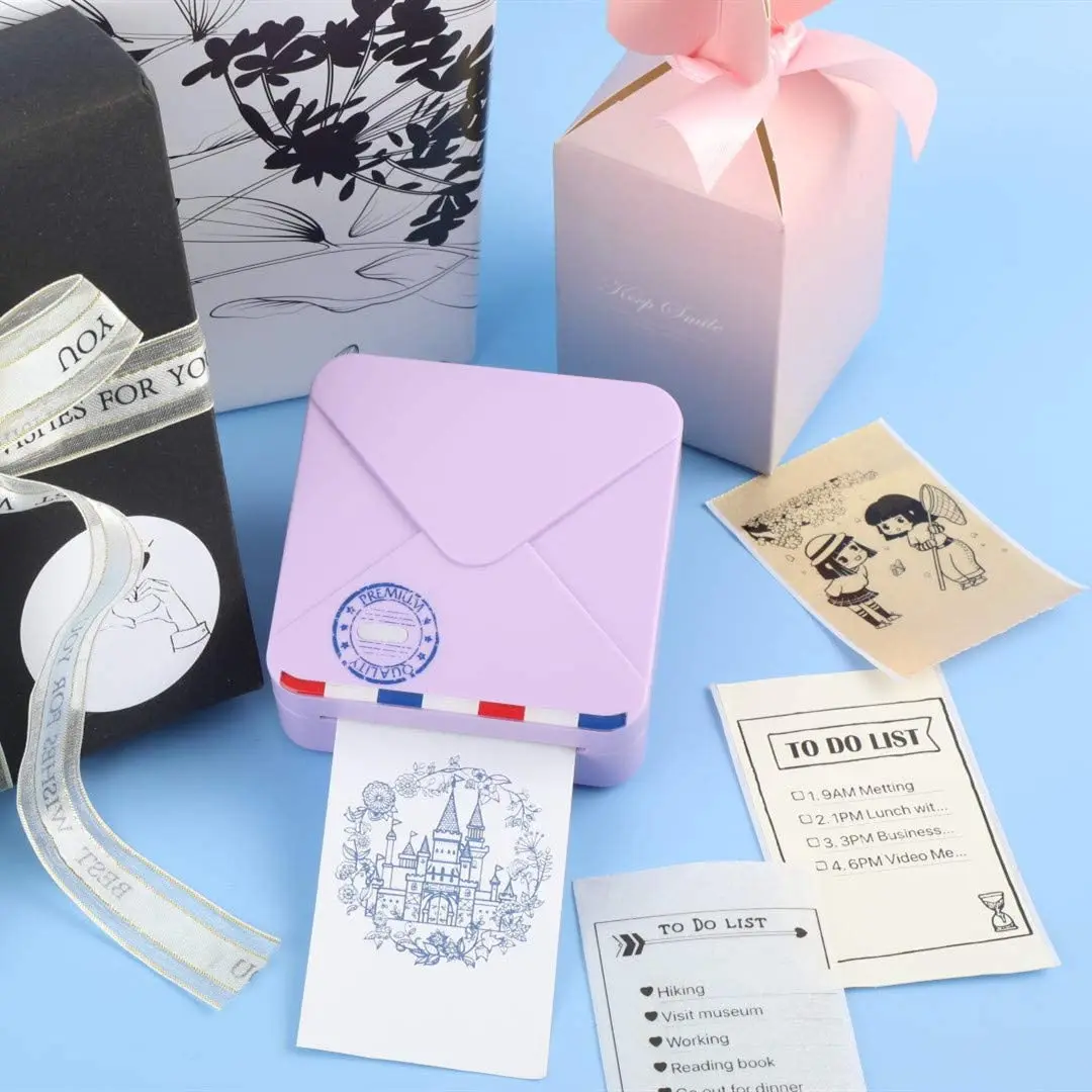 [Портативный мини-принтер 300 точек/дюйм]-фотопринтер 300 точек/дюйм дает вам совершенно новый опыт печати текста и изображений. Вы можете наслаждаться печатью фото и использовать его для дневника или ремесла. Можно напечатать только черно-белое изображение. Есть также специальные термообои с синим изображением.