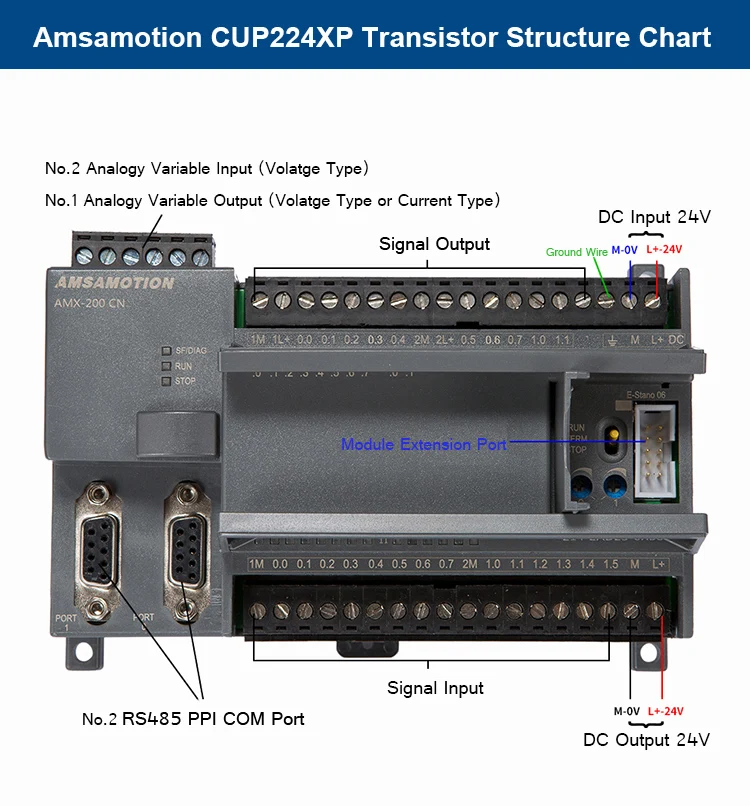 DC24V, переключатель 14 вход 10 выход, аналоговый 2 в 1 выход, аналоговый в цифровое преобразование 3 мс, 2 порта связи PPI, Поддержка скорости 187,5 K БОД, 2 порта поддержки Modbus, связь свободного порта, USS связь, 6 осей 30 кГц высокоскоростной счетчик, емкость 20K Поддержка программирования step7-micro/win, поддержка отключения данных Поддерживает протокол PPI / MPI/ MODBUS/USS.