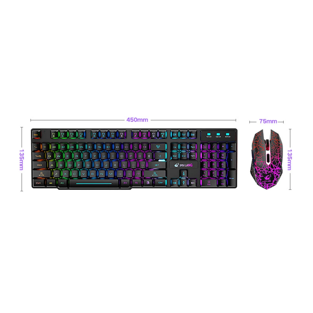 T3 беспроводной Перезаряжаемый красочный светильник, игровая клавиатура, мышь, набор для ноутбуков