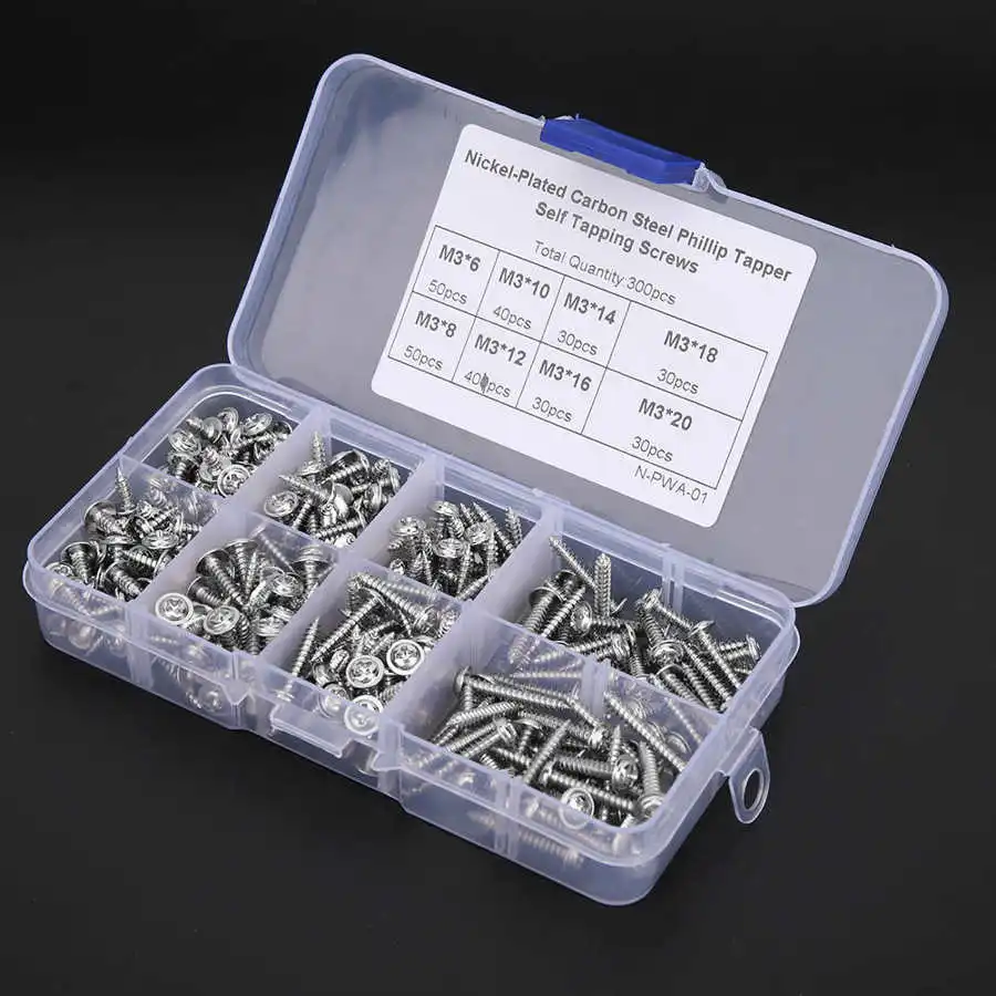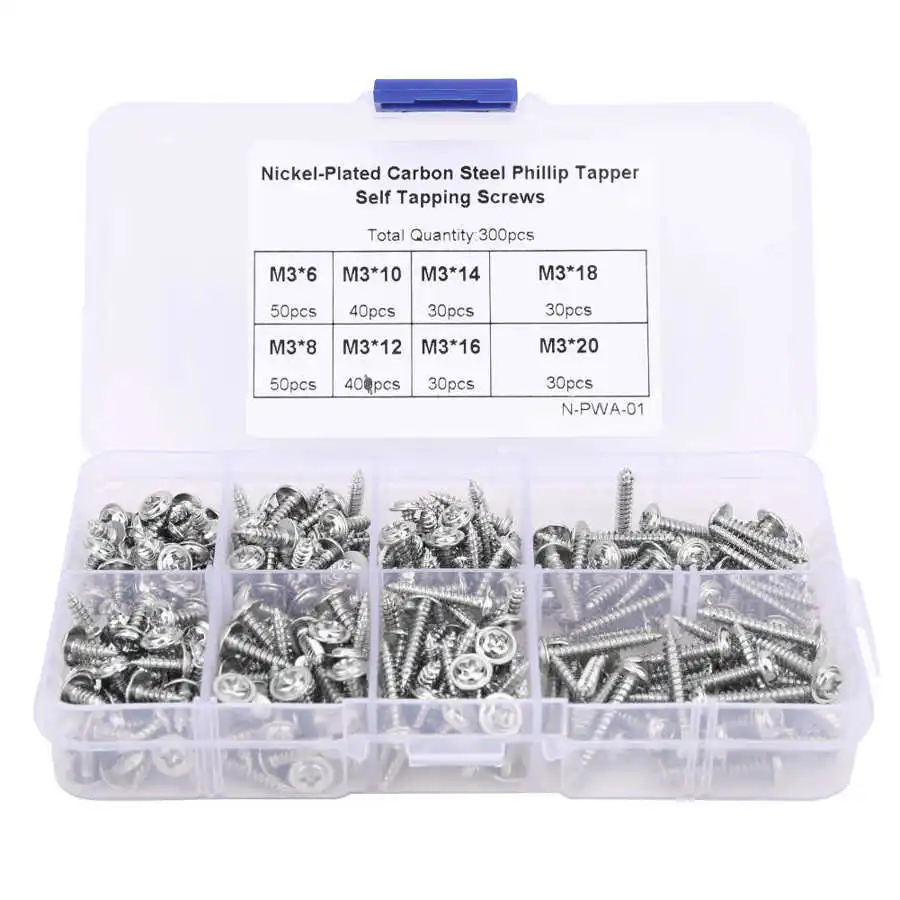300 шт./кор. nickel‑plated углерода Сталь Самонарезающий винт с плоской головкой, точного нарезания резьбы болтов и гаек M3